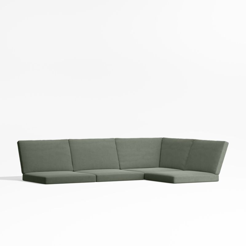 Add a layer of comfort to your Alfresco outdoor sectional with these sleekly tailored cushions. Covered with all-weather Sunbrella fabric in sage green, our exclusive cushions keep your three-piece petite L-shaped sofa looking fresh all season long.