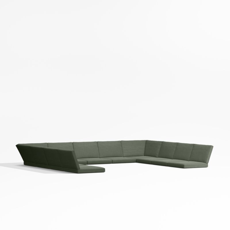 Add a layer of comfort to your Alfresco outdoor sectional with these sleekly tailored cushions. Covered with all-weather Sunbrella fabric in sage green, our exclusive cushions keep your nine-piece U-shaped sofa looking fresh all season long.