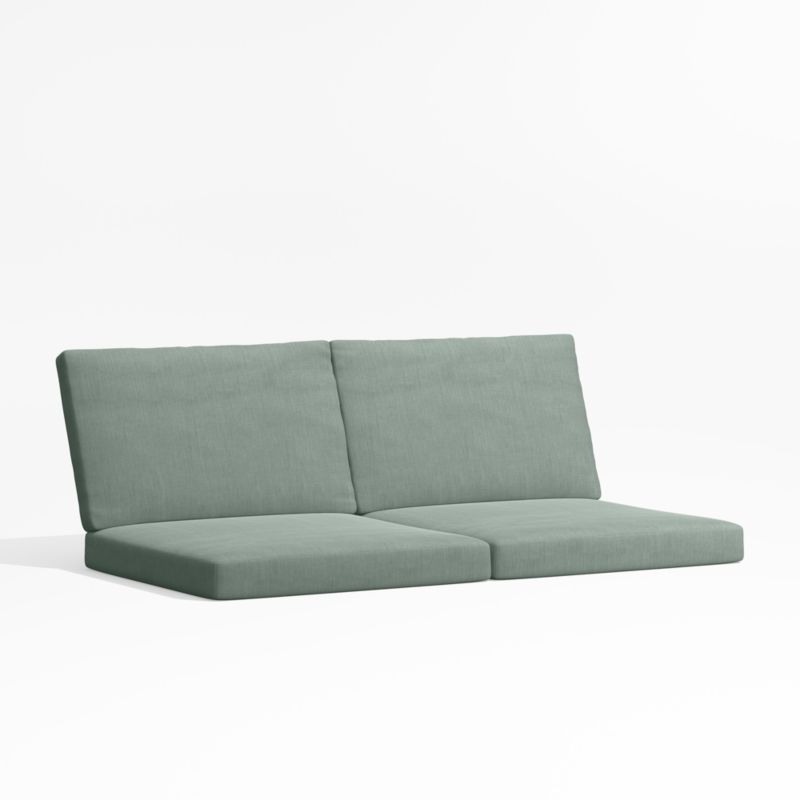 Add a layer of comfort to your Alfresco outdoor loveseat with these sleekly tailored cushions. Covered with all-weather Sunbrella fabric in spa blue, our exclusive cushions keep your two-piece loveseat looking fresh all season long.