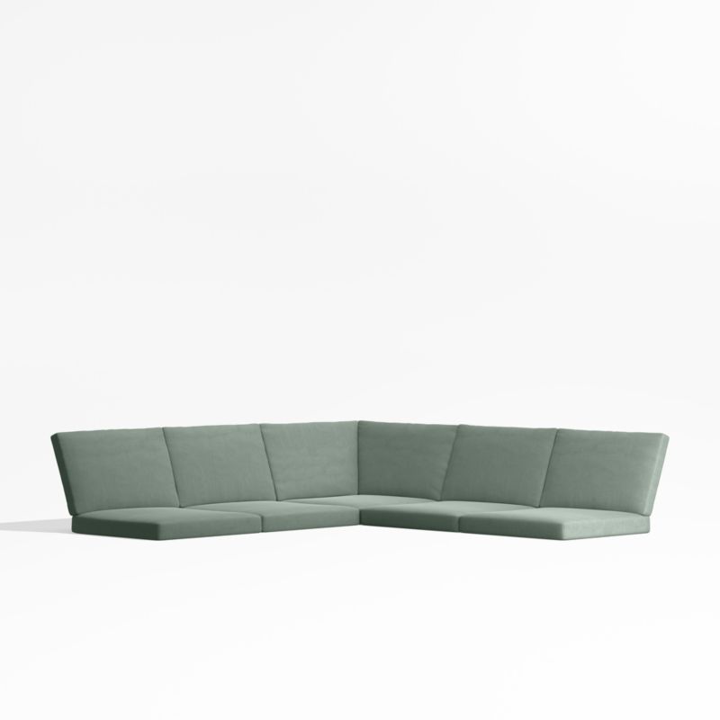 Add a layer of comfort to your Alfresco outdoor sectional with these sleekly tailored cushions. Covered with all-weather Sunbrella fabric in spa blue, our exclusive cushions keep your three-piece L-shaped sofa looking fresh all season long.