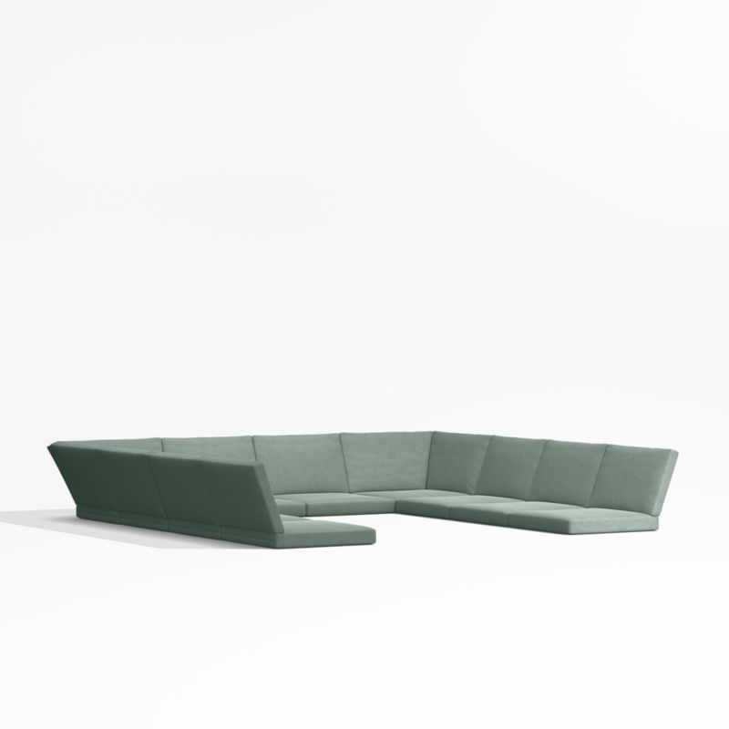 Add a layer of comfort to your Alfresco outdoor sectional with these sleekly tailored cushions. Covered with all-weather Sunbrella fabric in spa blue, our exclusive cushions keep your eight-piece U-shaped sofa looking fresh all season long.