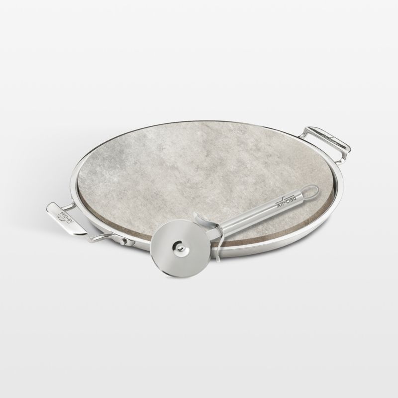 Bake and serve restaurant-worthy pizzas with this three-piece set from All-Clad. The porous soapstone heats evenly up to 600 degrees, absorbing moisture to create a crispy, golden-brown crust. Transport your oven-fresh pizza straight to the table with the stainless steel trivet outfitted with extra-large handles to accommodate oven mitts, then use the stainless steel rotary cutter to serve neat slices.