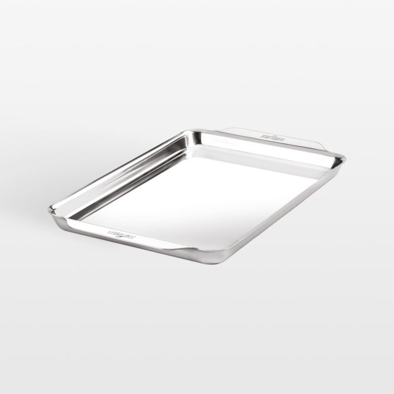 Perfect for baking cookies, roasting vegetables or warming up hor d'oeuvres, this sheet pan is made of durable, even-heating stainless steel with a heat-conductive aluminum core. As the name suggests, the pan is ideal for baking the thin sheet cakes used to make jelly roll cakes. It's also great for preparing all-in-one sheet pan dinners.