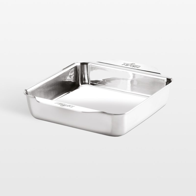 Perfect for making casseroles, coffee cake or brownies, this square baking pan is made of durable, even-heating stainless steel with a heat-conductive aluminum core. Oven- and broiler-safe to 600°F, the sturdy pan is warp-resistant, yields uniform browning and offers consistent results.