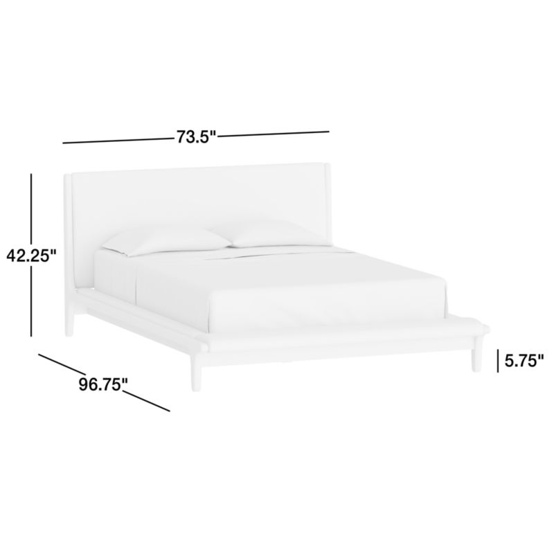 Mid-century inspiration, beautiful oak and a little something extra. Take a closer look at our Alrik bed and you'll see how the frame extends a bit farther at the foot of the bed to form a bench. The cushioned footrail, headboard and side rails are upholstered in a textural weave of heathered neutrals, complementing the streamlined solid oak frame finished in warm brown. Clean-lined yet full of subtle design details, the bed is accented with recessed panels, rounded T-shaped legs and, of course, the integrated bench.