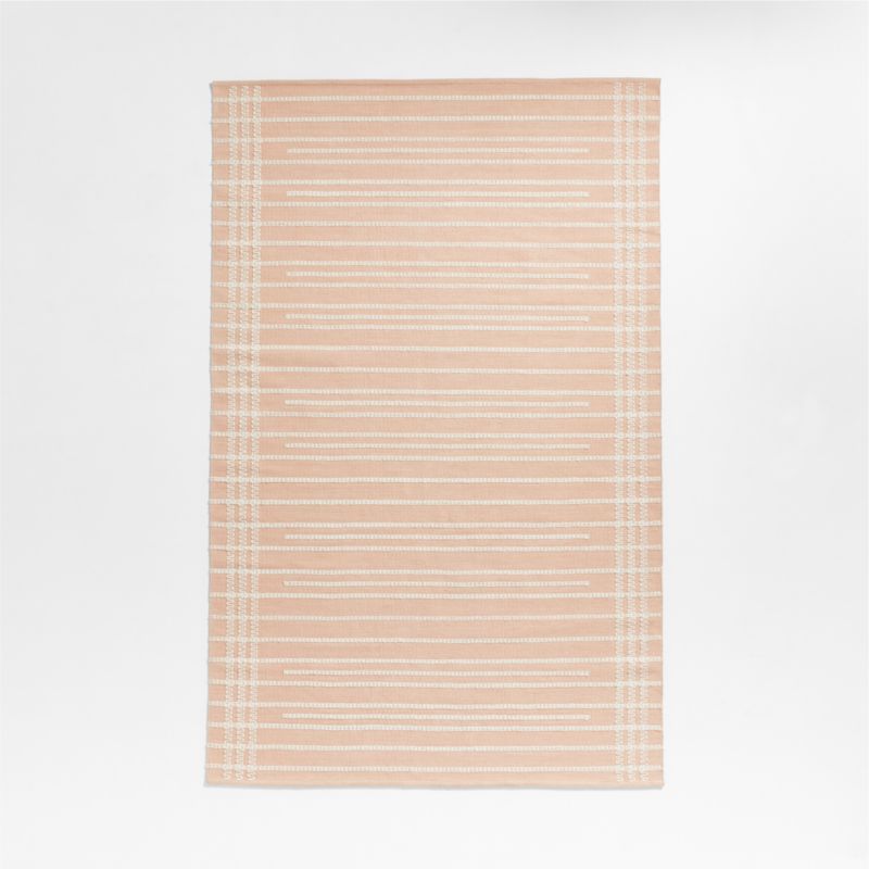 Ground your nursery or kid's bedroom in graphic stripes and soft color. Handwoven by artisans who are masters of the craft, our Alternating Lines Rug mixes a flatweave in pastel pink cotton with chunky looped stripes and zig-zags in cloud-white wool. The texture-rich floor covering is invitingly soft yet durable, made to last for years to come.