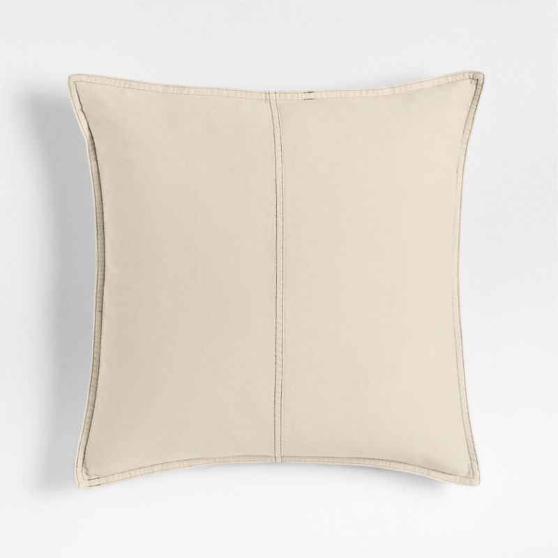 Amanha Washed Organic Cotton Denim 20"x20" Travertine Beige Throw Pillow with Feather Insert