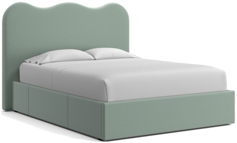 Grace your bedroom with the luxe sophistication of Amara. The camel-curved headboard and clean-lined storage bed are neatly tailored to show off the fabric. A soft fill cushions the headboard to indulge late-night reading or breakfast in bed, and the base features three roomy drawers—one on each side and one at the foot of the bed—for storing off-season clothes and extra blankets. As a plus, the side drawers open with just enough clearance to avoid hitting nightstands and other bedroom furniture.