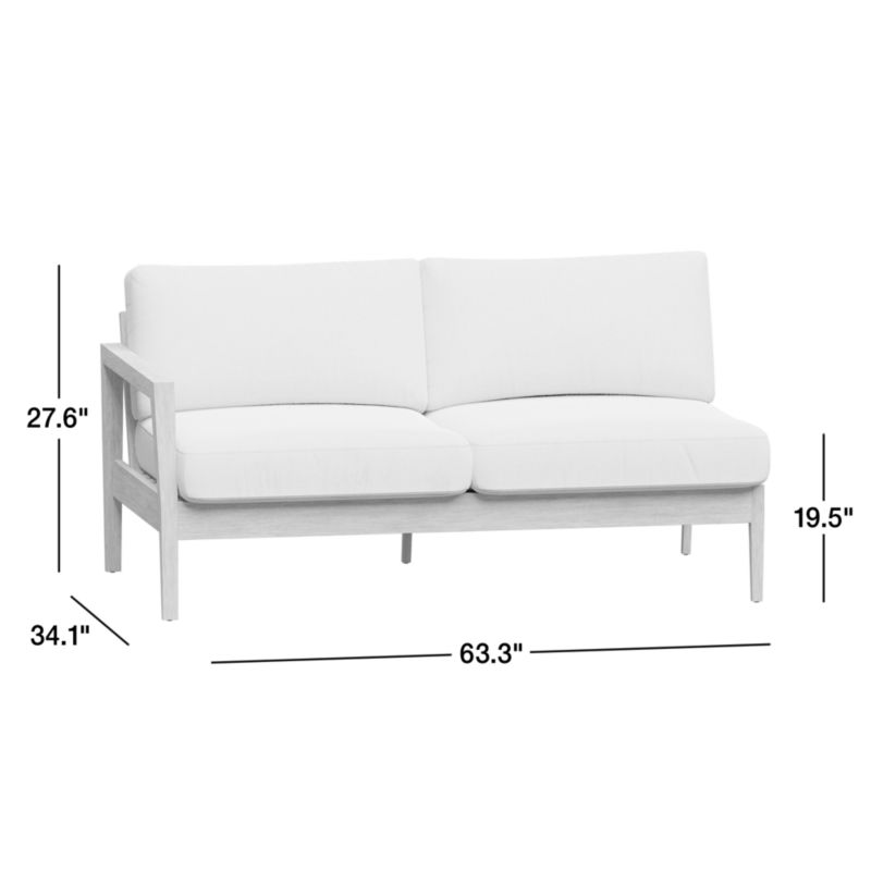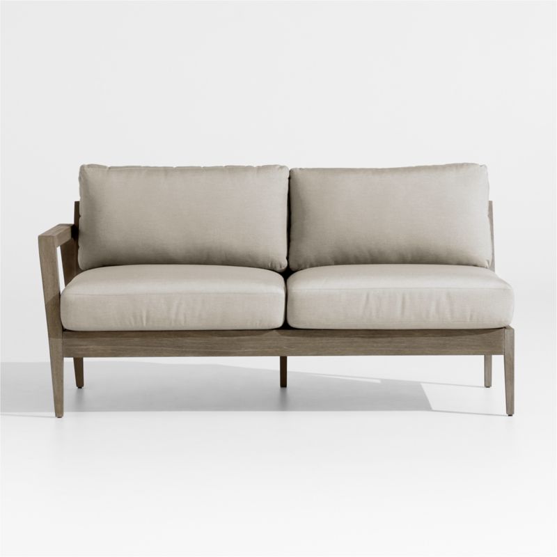 Andorra 63" Weathered Grey Wood Left-Arm Outdoor Sofa with Sand Cushions