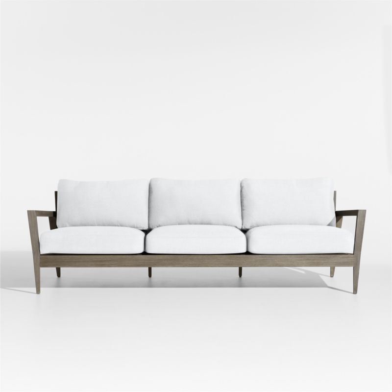 Andorra 97" Weathered Grey Wood Outdoor Sofa with White Sunbrella ® Cushions