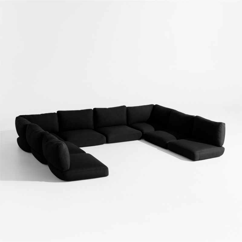 Our Andorra outdoor sectional sofa owes its coastal cool vibe to fine workmanship, contemporary lines and the luxurious comfort of its black cushions. Designed for the petite U-shaped sectional, the seat and back cushions are filled with plush and inviting polyfoam and fiber and upholstered in weather-resistant fabric. Simply attach via fabric-tab fasteners to the sofa frame (sold separately).