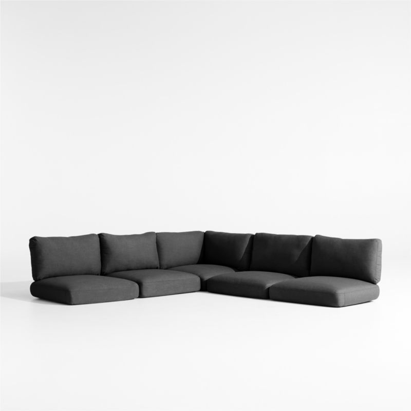 Our Andorra outdoor sectional sofa owes its coastal cool vibe to fine workmanship, contemporary lines and the luxurious comfort of its charcoal grey cushions. Designed for the L-shaped sectional, the seat and back cushions are filled with plush and inviting polyfoam and fiber and upholstered in weather-resistant fabric. Simply attach via fabric-tab fasteners to the sofa frame (sold separately).
