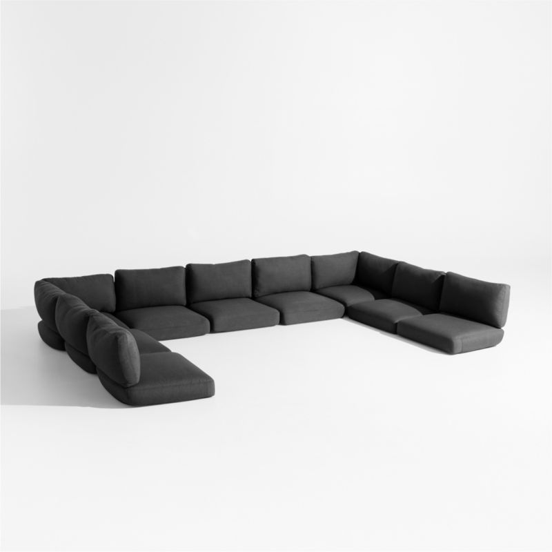 Our Andorra outdoor sectional sofa owes its coastal cool vibe to fine workmanship, contemporary lines and the luxurious comfort of its charcoal grey cushions. Designed for the U-shaped sectional, the seat and back cushions are filled with plush and inviting polyfoam and fiber and upholstered in weather-resistant fabric. Simply attach via fabric-tab fasteners to the sofa frame (sold separately).