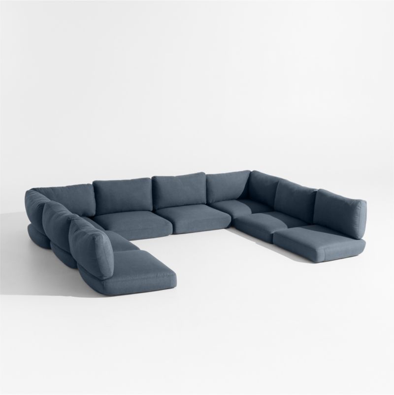 Our Andorra outdoor sectional sofa owes its coastal cool vibe to fine workmanship, contemporary lines and the luxurious comfort of its harbor blue cushions. Designed for the petite U-shaped sectional, the seat and back cushions are filled with plush and inviting polyfoam and fiber and upholstered in weather-resistant fabric. Simply attach via fabric-tab fasteners to the sofa frame (sold separately).