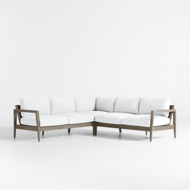 Andorra Weathered Grey Wood 3-Piece L-Shaped Outdoor Sectional Sofa with White Sunbrella ® Cushions