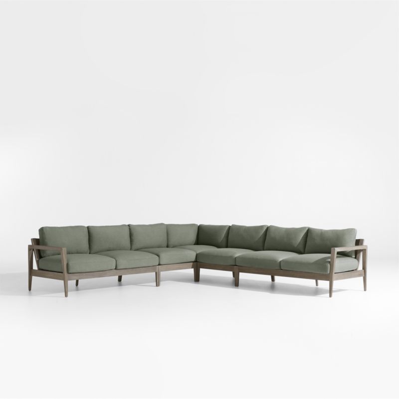 Andorra Weathered Grey Wood 5-Piece L-Shaped Outdoor Sectional Sofa with Sage Green Sunbrella ® Cushions