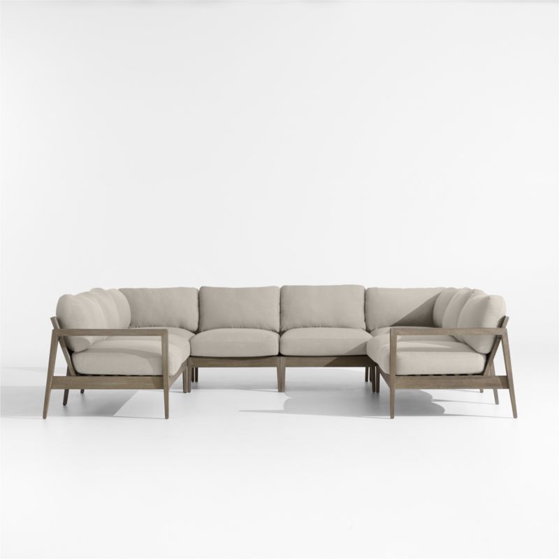Andorra Weathered Grey Wood 6-Piece Petite U-Shaped Outdoor Sectional Sofa with Silver Sunbrella ® Cushions