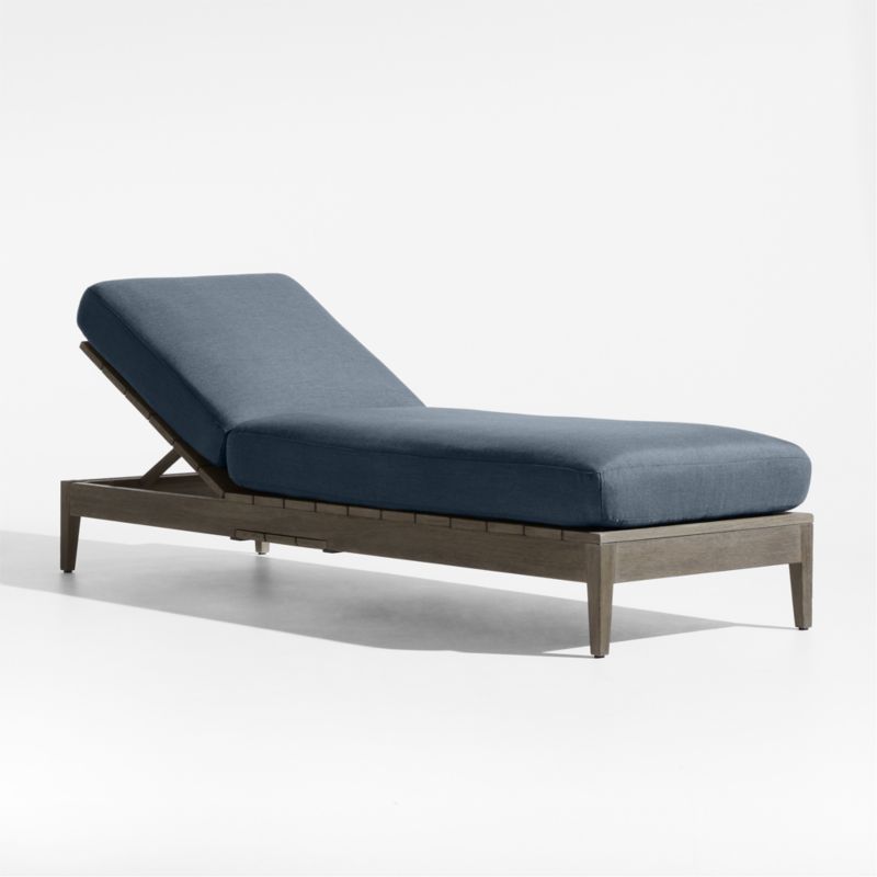 Andorra Weathered Grey Wood Outdoor Chaise Lounge with Harbor Blue Sunbrella ® Cushion