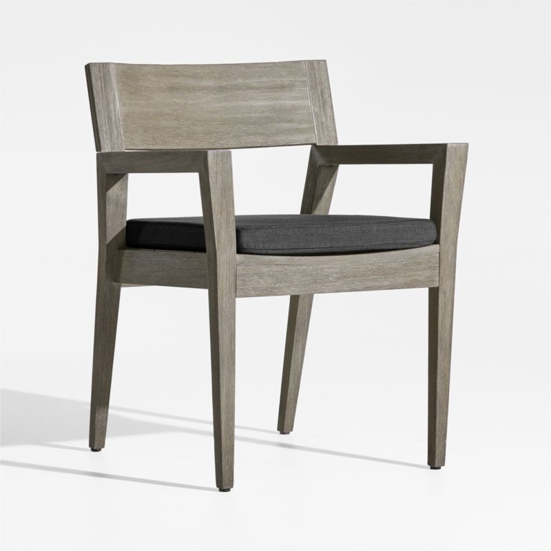 Andorra Weathered Grey Wood Outdoor Dining Arm Chair with Charcoal Grey Sunbrella ® Cushion