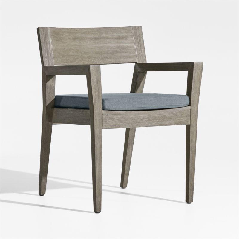 Andorra Weathered Grey Wood Outdoor Dining Arm Chair with Haze Grey Sunbrella ® Cushion