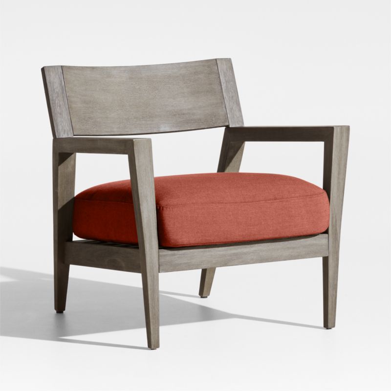 Andorra Weathered Grey Wood Outdoor Lounge Chair with Henna Red Sunbrella ® Cushion