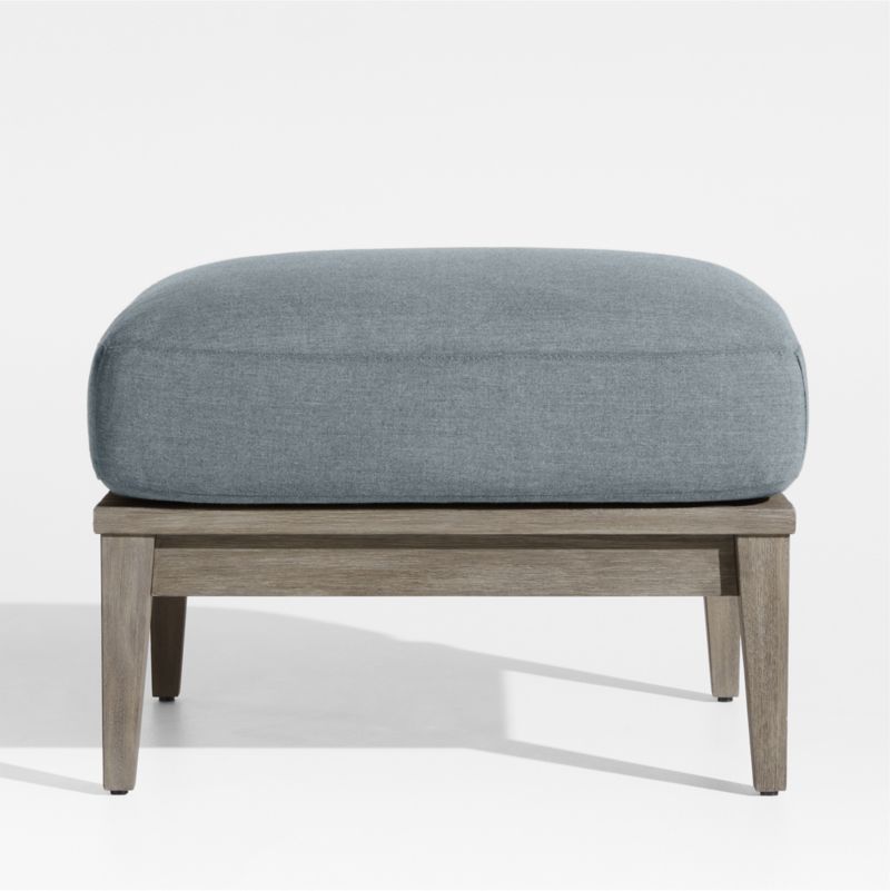 Inspired by a ship's graceful lines, Andorra owes its coastal cool vibe to fine workmanship and contemporary lines. Designed to partner with our Andorra lounge collection, the clean-lined ottoman is made of sustainable mahogany with a top of oversized eucalyptus slats. Wire brushing and a grey-brown finish replicate the look of sea-weathered wood, while the weather-resistant haze grey cushion adds an extra layer of stay-awhile comfort.