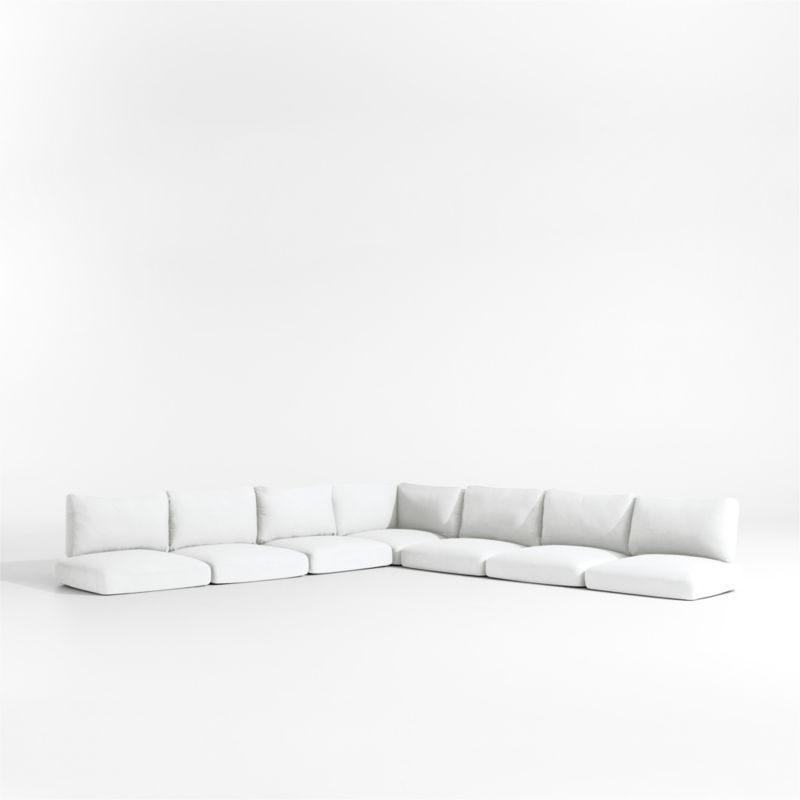 Our Andorra outdoor sectional sofa owes its coastal cool vibe to fine workmanship, contemporary lines and the luxurious comfort of its white cushions. Designed for the L-shaped sectional, the seat and back cushions are filled with plush and inviting polyfoam and fiber and upholstered in weather-resistant fabric. Simply attach via fabric-tab fasteners to the sofa frame (sold separately).