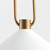 Airy and graceful in gleaming burnished brass, our Andre pendant graces your home like a piece of minimalist jewelry. A loop of slender brass tubing supports a conical shade that reflects light softly. Hung over a breakfast table or in multiples down a hallway or above a kitchen island, the elegant cone pendant offers an illuminating mix of task and ambient lighting.