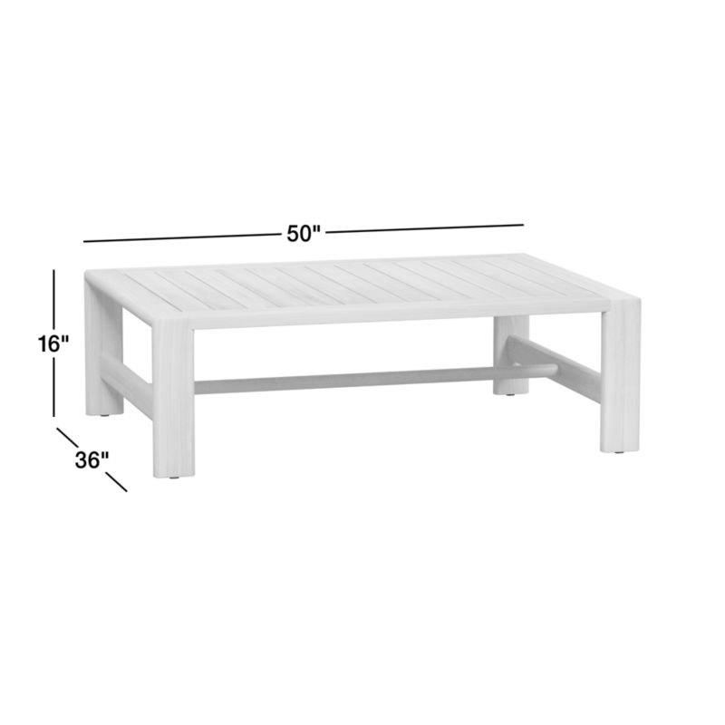 Our Anguilla outdoor collection is a beautiful, worry-free place to spend your lazy days. Exceptionally durable solid teak shapes the coffee table's angular silhouette, distinguished with eye-catching details in the mitered legs, bullnose edges and slatted top. The table is generously sized to park a party's worth of snacks and drinks, making it the perfect partner to an Anguilla sectional sofa or cluster of armchairs.