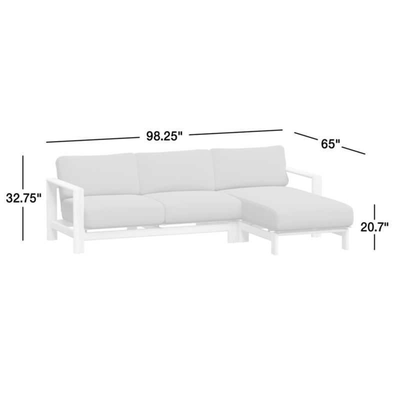 Our Anguilla outdoor sectional is a beautiful, worry-free place to spend your lazy days. Exceptionally durable solid teak frames the sofa's angular silhouette, while thick, comfortable cushions covered in weather-resistant upholstery lull you into warm-weather bliss. Composed of a right-arm chaise and left-arm sofa, the two-piece sectional sofa is crafted with roomy seats, solid construction and sleek lines for ideal patio or poolside lounging.