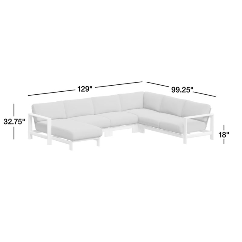 Our Anguilla sectional is a beautiful, worry-free place to spend lazy days outdoors. Exceptionally durable solid teak frames the sofa's angular silhouette, while thick, comfortable cushions covered in weather-resistant upholstery lull you into warm-weather bliss. The five-piece sectional sofa—right-arm sofa, left-arm chaise, two armless chairs and a corner—is crafted with roomy seats, solid construction and sleek lines for ideal patio or poolside lounging.