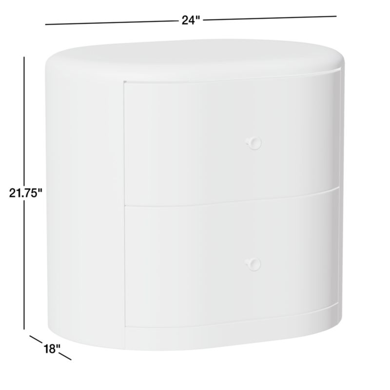 Designed to complement the contours of our Anneli bed, the nightstand sculpts a racetrack silhouette in gorgeously grained oak. Curved drawer fronts flow flush with the rounded frame, echoing the capsule shape of the seamless radius-edged top. Petite knobs accent each drawer with the subtle glow of burnished brass, enhancing the clean, contemporary aesthetic. And if good looks weren't enough, the nightstand is equipped with a power strip with outlets and USB ports to light a lamp and charge devices.