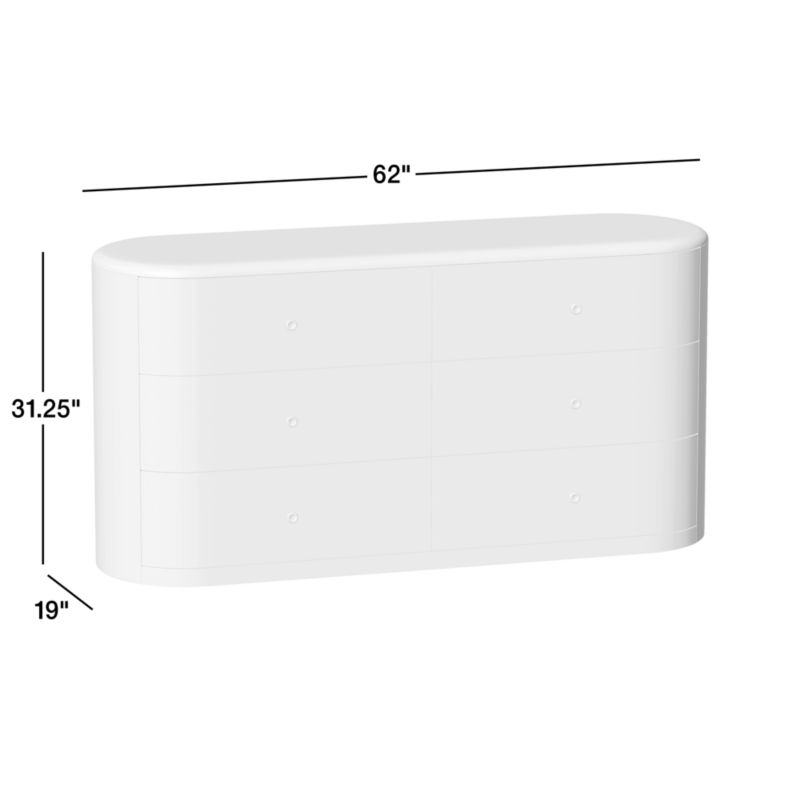 Designed to complement the contours of our Anneli bed, the six-drawer dresser sculpts a racetrack silhouette in gorgeously grained oak. Curved drawer fronts flow flush with the rounded frame, echoing the capsule shape of the seamless radius-edged top. Petite knobs accent the facade with the subtle glow of burnished brass, enhancing the dresser's clean, contemporary aesthetic.