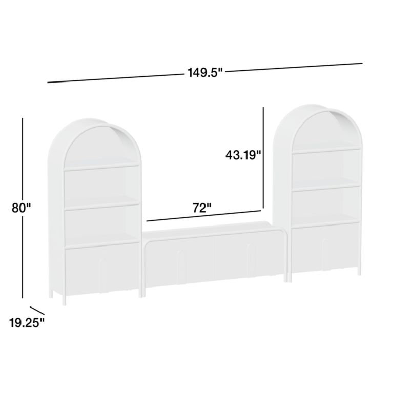 An entertainment center with a contemporary turn, Annie refreshes household storage with a rounded silhouette. Made of solid oak and oak veneer with a natural finish, the media credenza and two bookcases flow bentwood poles that arc from leg to leg, framing open shelves and storage cabinets with flat-front doors that show off the wood grain. Cleanly integrated into the arcing design, long, rounded pulls open to reveal interior shelves, while fixed open shelves showcase books, photos or collectibles.