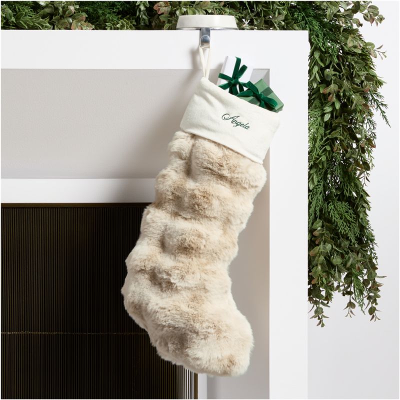 Our faux fur stocking is as cozy and luxe as the real thing. Crafted of recycled fibers, the ivory faux fur is subtly puckered to create a fluffy dimensional texture that's irresistibly soft. Finished with a creamy cuff perfect for personalizing, the stocking pairs with the matching tree skirt for a sumptuous Christmas look.