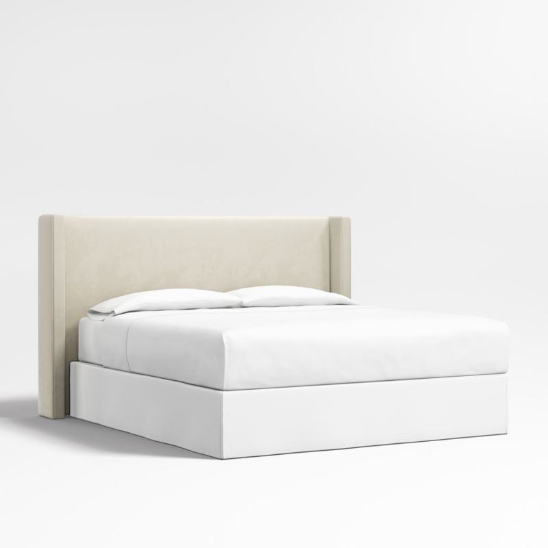 Our custom bed collection lets you mix and match our top-selling headboards and bases for a look that's truly yours. The Arden shelter headboard surrounds you with its wingback contours upholstered in beige faux mohair. Our Arden upholstered headboard is designed to fit perfectly with any of our bed bases.