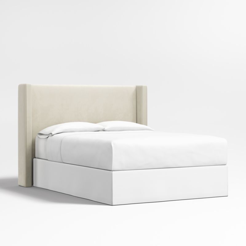 Our custom bed collection lets you mix and match our top-selling headboards and bases for a look that's truly yours. The Arden shelter headboard surrounds you with its wingback contours upholstered in beige faux mohair. Our Arden upholstered headboard is designed to fit perfectly with any of our bed bases.