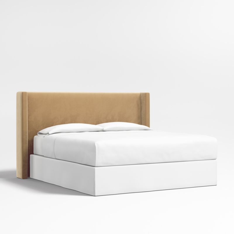 Our custom bed collection lets you mix and match our top-selling headboards and bases for a look that's truly yours. The Arden shelter headboard surrounds you with its wingback contours upholstered in faux mohair in warm camel brown. Our Arden upholstered headboard is designed to fit perfectly with any of our bed bases.