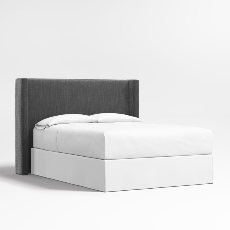 Our custom bed collection lets you mix and match our top-selling headboards and bases for a look that's truly yours. The Arden shelter headboard surrounds you with its fully upholstered, wingback contours. Topstitching lends a tailored look to the textured-weave fabric in chic charcoal grey. Our Arden upholstered headboard is designed to fit perfectly with any of our bed bases.