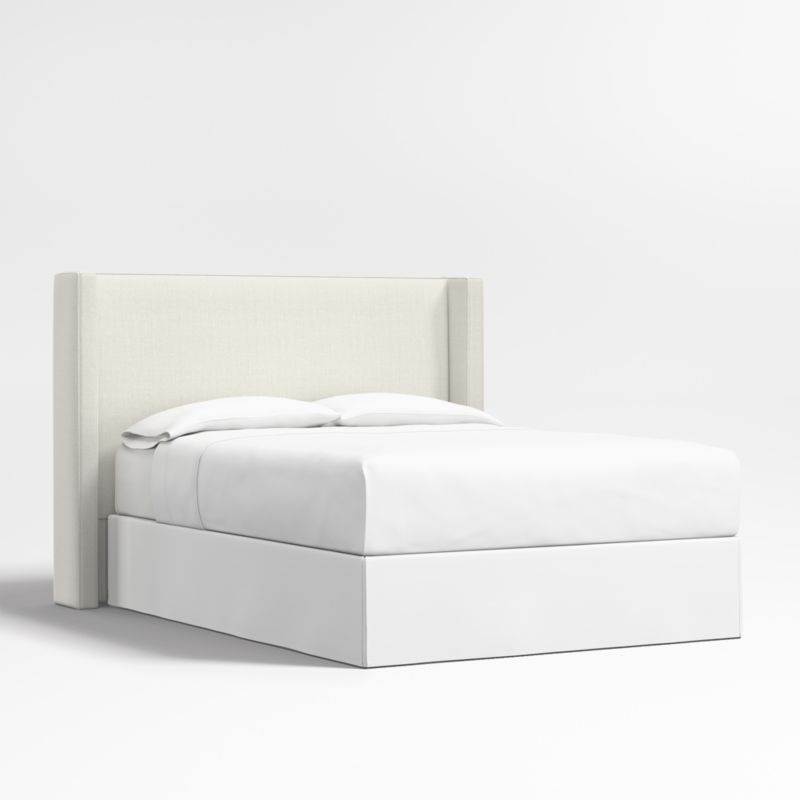 Our custom bed collection lets you mix and match our top-selling headboards and bases for a look that's truly yours. The Arden shelter headboard surrounds you with its fully upholstered, wingback contours. Topstitching lends a tailored look to the textured-weave fabric in decor-friendly ivory. Our Arden upholstered headboard is designed to fit perfectly with any of our bed bases.