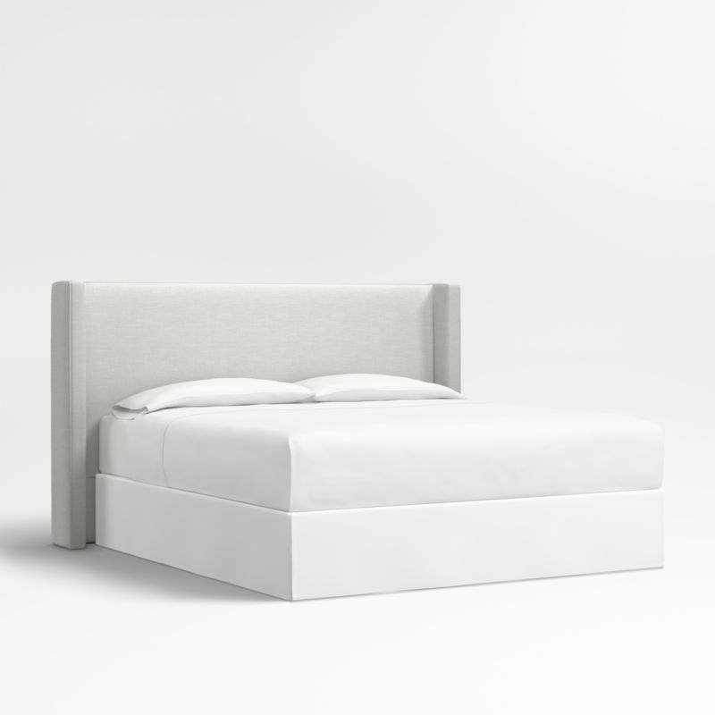 Our custom bed collection lets you mix and match our top-selling headboards and bases for a look that's truly yours. The Arden shelter headboard surrounds you with its fully upholstered, wingback contours. Topstitching lends a tailored look to the linen-blend fabric in cool grey. Our Arden upholstered headboard is designed to fit perfectly with any of our bed bases.