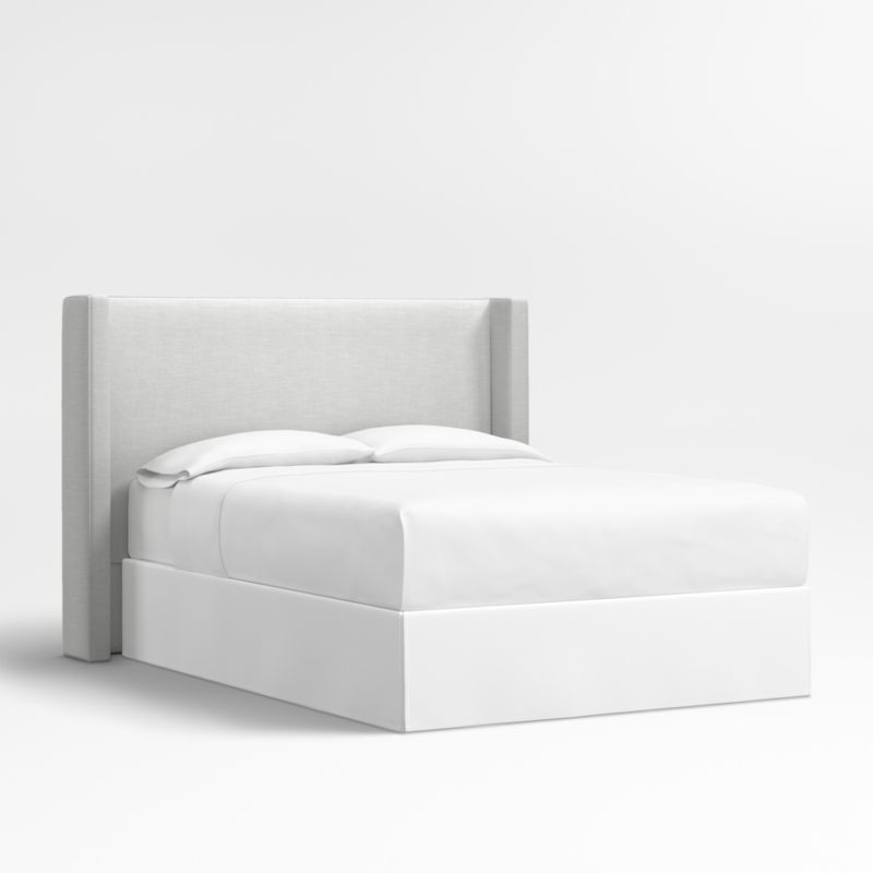Our custom bed collection lets you mix and match our top-selling headboards and bases for a look that's truly yours. The Arden shelter headboard surrounds you with its fully upholstered, wingback contours. Topstitching lends a tailored look to the linen-blend fabric in cool grey. Our Arden upholstered headboard is designed to fit perfectly with any of our bed bases.