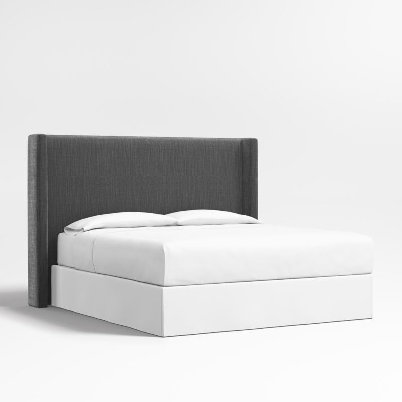 Our custom bed collection lets you mix and match our top-selling headboards and bases for a look that's truly yours. Our tall Arden headboard rises high to shelter you within its fully upholstered, wingback contours. Topstitching lends a tailored look to the textured-weave fabric in chic charcoal grey. Our Arden upholstered headboard is designed to fit perfectly with any of our bed bases.