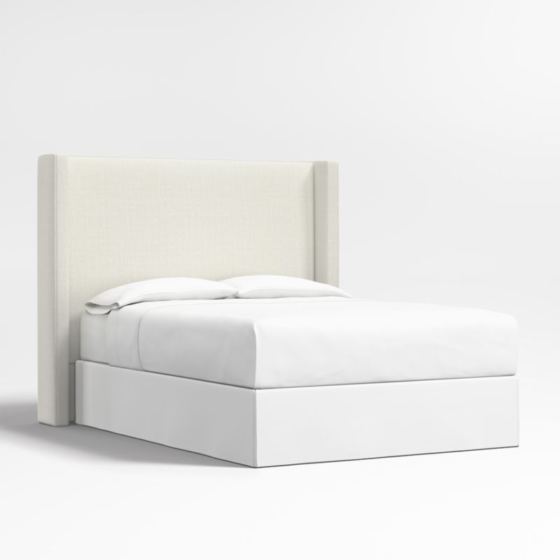 Our custom bed collection lets you mix and match our top-selling headboards and bases for a look that's truly yours. Our tall shelter headboard rises high to surround you with its fully upholstered, wingback contours. Topstitching lends a tailored look to the textured-weave fabric in decor-friendly ivory. Our Arden upholstered headboard is designed to fit perfectly with any of our bed bases.