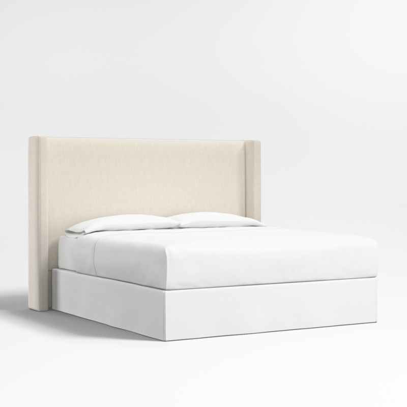 Our custom bed collection lets you mix and match our top-selling headboards and bases for a look that's truly yours. Our tall shelter headboard rises high to surround you with its fully upholstered, wingback contours. Topstitching lends a tailored look to the linen-blend fabric in versatile ivory. Our Arden upholstered headboard is designed to fit perfectly with any of our bed bases.