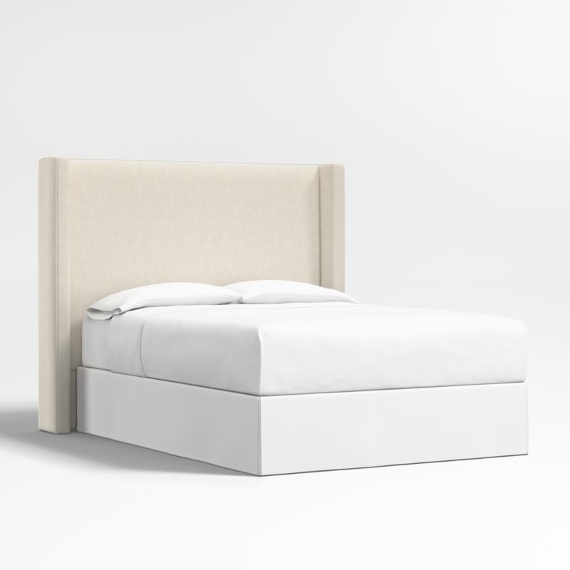 Our custom bed collection lets you mix and match our top-selling headboards and bases for a look that's truly yours. Our tall shelter headboard rises high to surround you with its fully upholstered, wingback contours. Topstitching lends a tailored look to the linen-blend fabric in versatile ivory. Our Arden upholstered headboard is designed to fit perfectly with any of our bed bases.