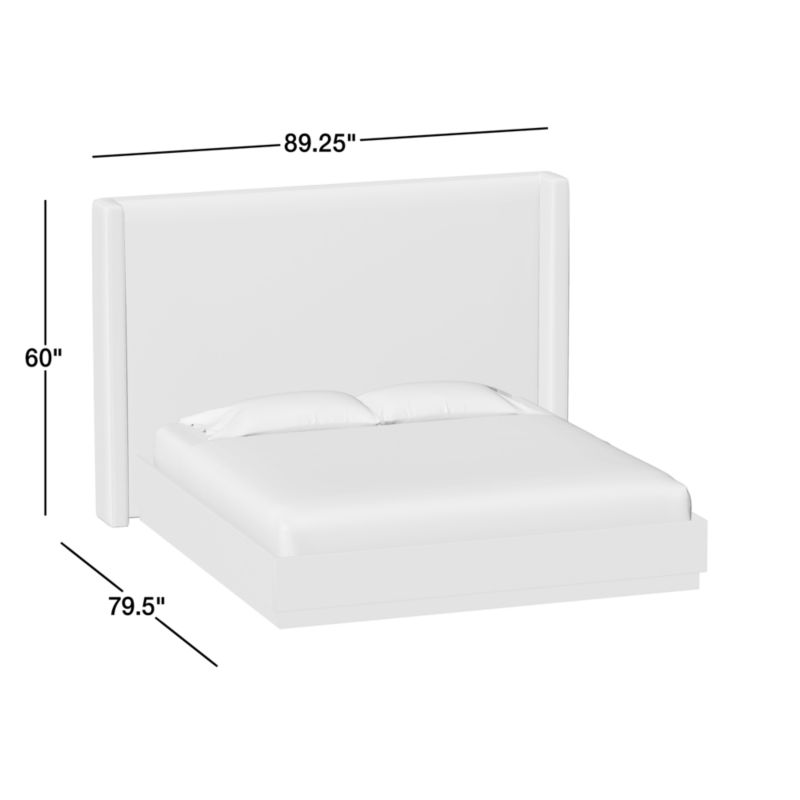 Arden Upholstered King Headboard and Wood Bed60"Hheight89.25"Wwidth79.5"DdepthMeasurements are in inches.