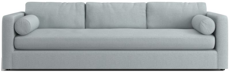 Destined to be everyone's favorite spot to chill, Aris makes modern design soft and cozy. Neat track arms and a broad deck establish the grand-sized sofa's clean lines, while the plush bench seat and back cushions invite the gang to get comfortable. A couple of bolster pillows aid in getting the snuggle just right. The Aris sofa is a Crate & Barrel exclusive.