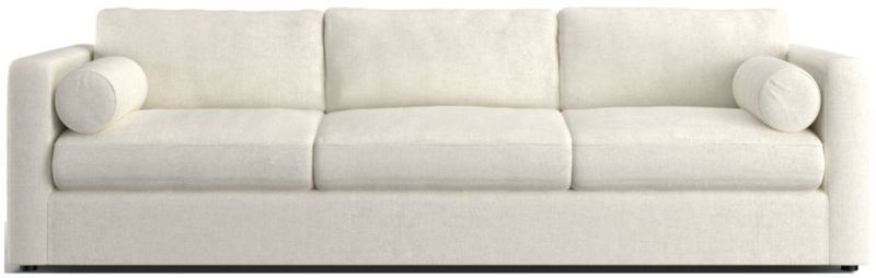 Destined to be everyone's favorite spot to chill, Aris makes modern design soft and cozy. Neat track arms and a broad deck establish the sofa's clean lines, while plush seat and back cushions invite the gang to get comfortable. A couple of bolster pillows aid in getting the snuggle just right.