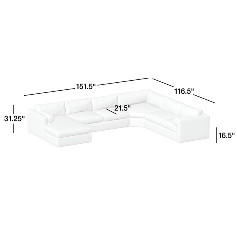 Aris 4-Piece L-Shaped Wedge Sectional Sofa with Chaise Lounge31.25"Hheight151.5"Wwidth116.5"DdepthMeasurements are in inches.